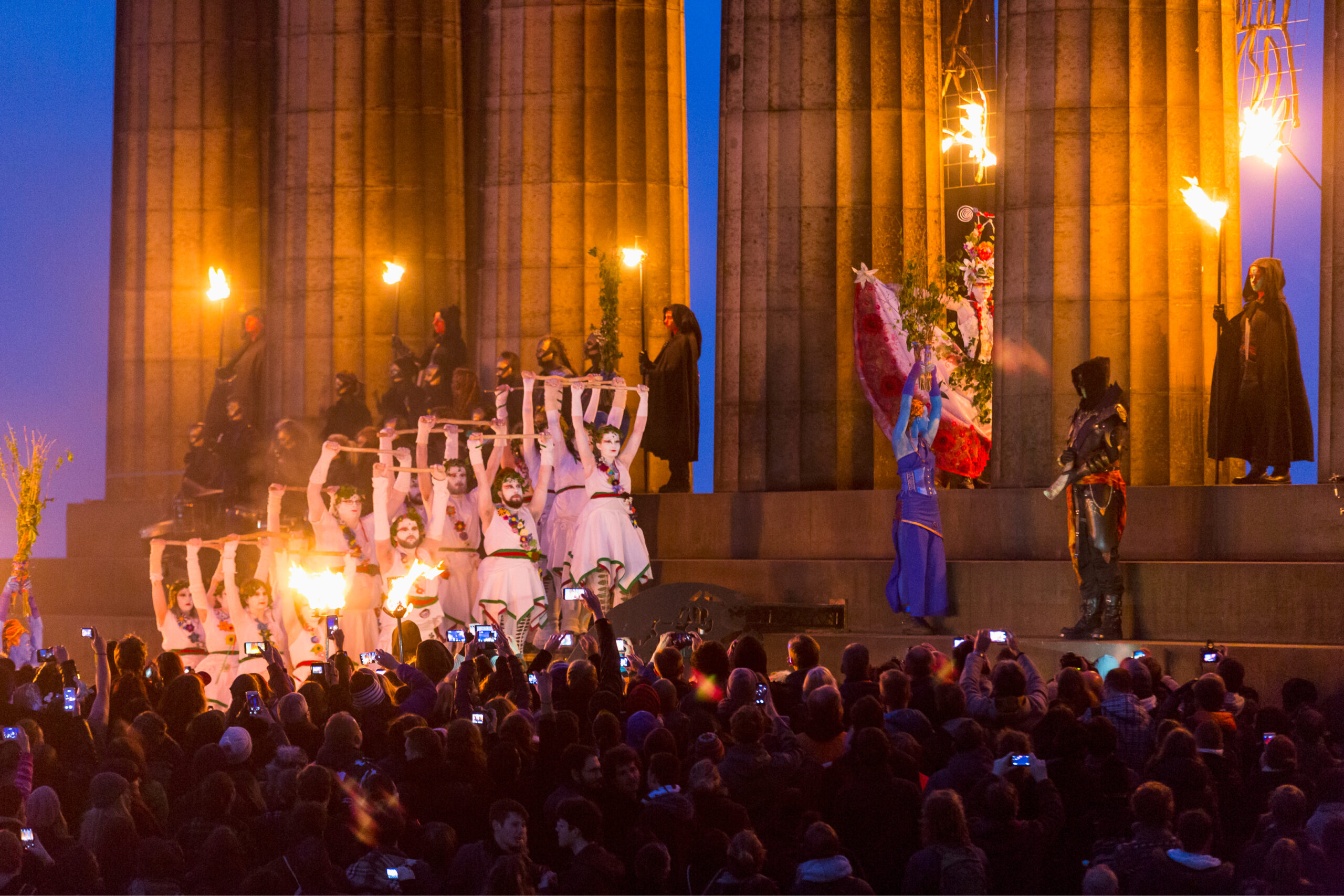 Chaque année, la colline de Calton Hill se transforme en théâtre à ciel ouvert. Costumes, danses rituelles et mise en scène immersive plongent les spectateurs dans un univers mythique. Cette nuit particulière marque symboliquement le passage vers la saison lumineuse.