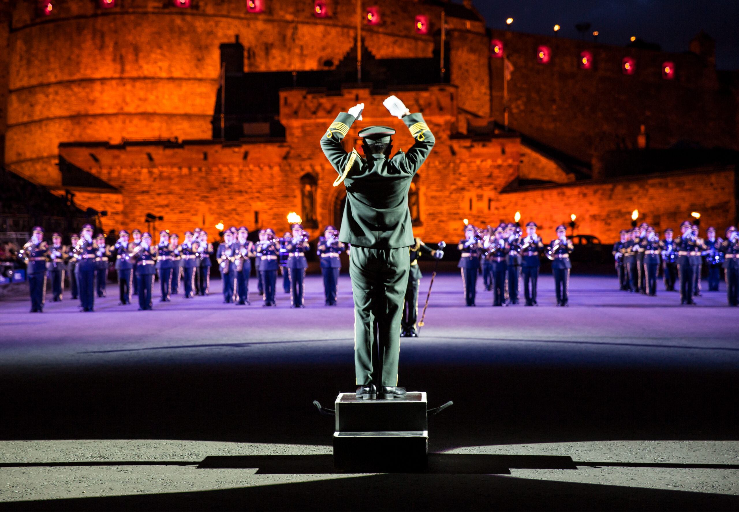 Chaque représentation se déroule en soirée, dans une mise en scène spectaculaire face aux remparts illuminés. Les jeux de lumière, les uniformes colorés et la puissance des orchestres créent une ambiance unique.